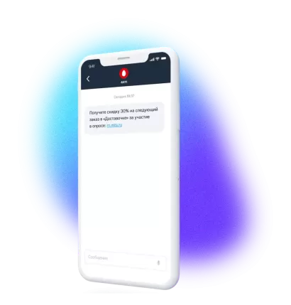 В зависимости от специфики опроса вы можете заказать анкетирование, SMS-опрос или опрос по телефону с помощью голосового помощника. Клиенты увидят оповещение и пройдут опрос по желанию.
